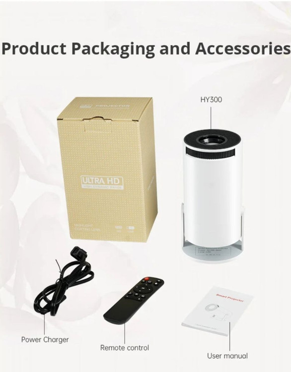 BORREGO HY300 ویدئو پروژکتوری مدرن با کیفیت 4K HD و شدت نور تصویر 8000 لومن، مناسب برای استفاده در مکانهای مختلف از جمله اتاق خواب، محل کار، کافی شاپ و… می باشد. ویدئو پروژکتور HY-300 یک دستگاه پرتابل با ابعاد کوچک و قابلیت حمل آسان است که تجربهای جذاب و جدید را برای شما در هنگام دیدن فیلم و سریال و بازی (Gaming) فراهم میکند. این ویدئو پروژکتور با ویژگیهای منحصر به فردی همچون کیفیت تصویر بالا، رنگهای زنده و واضح، و سیستم عامل Android 11.0، توانایی ارائه تصاویر شفاف و زیبا را داراست.