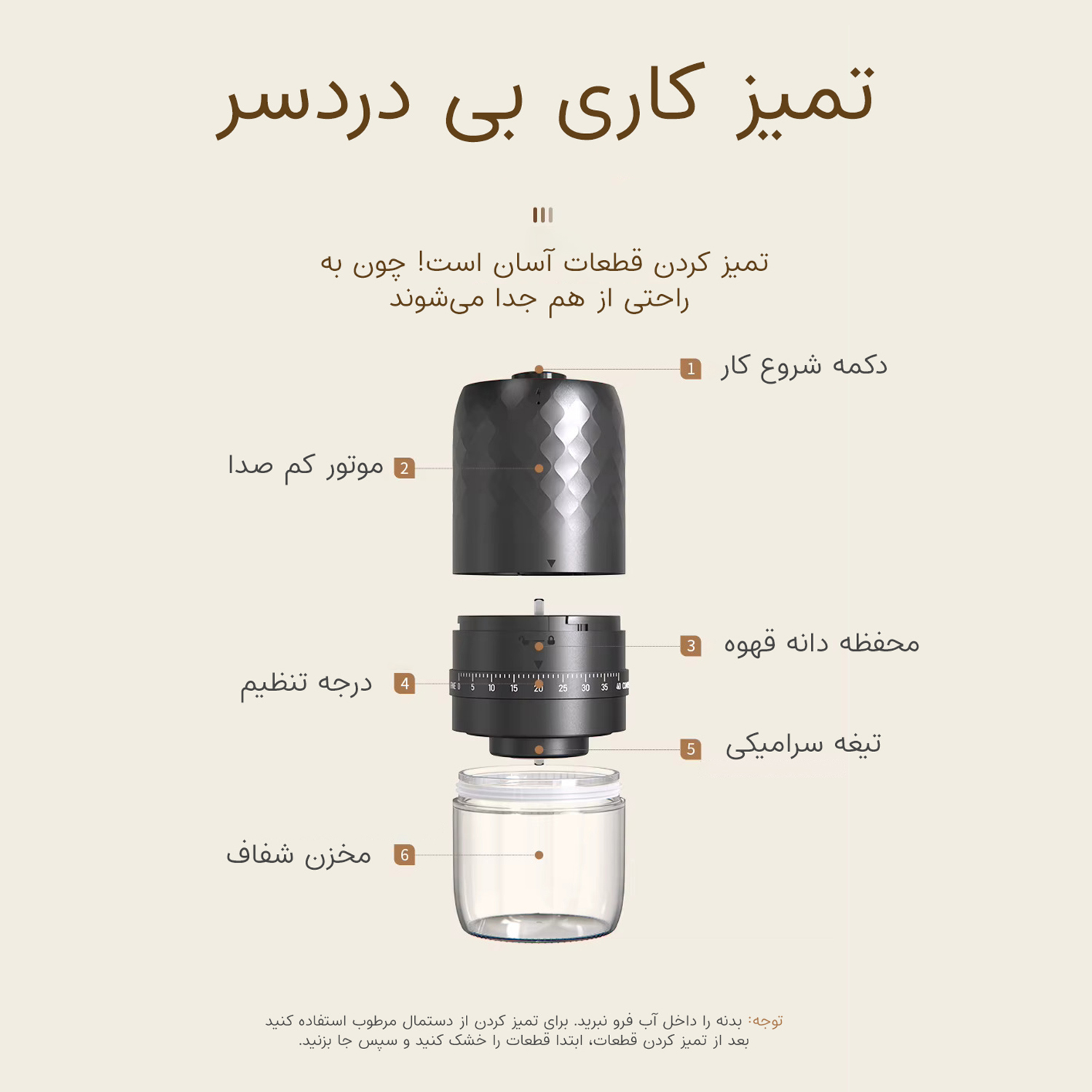 - تنظیم درجه آسیاب از ۰ تا ۴۰